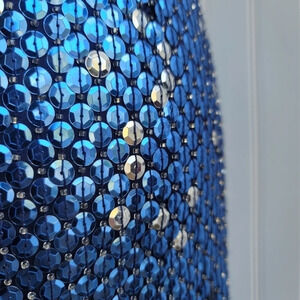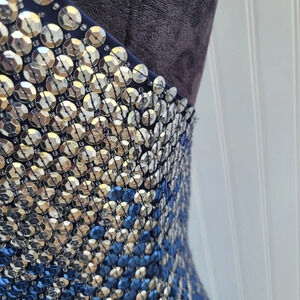 Cache Womens Sequin Blue Silver Maxi Formal Dress Prom Queen Slit Open Back Sz 4