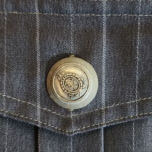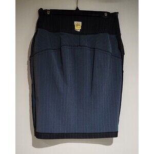 Cache Womens Straight Skirt Grey Striped Cotton-Blend Unlined Big Buttons Size 8