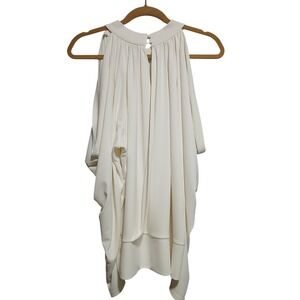 Cache Womens Top Blouse XL Ivory Cold Shoulder Long Sleeve Dressy