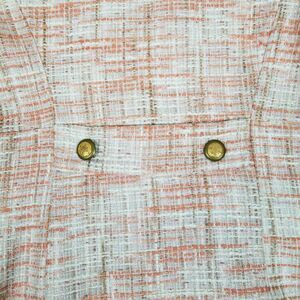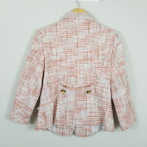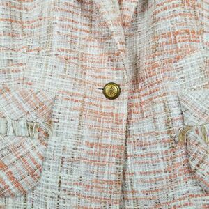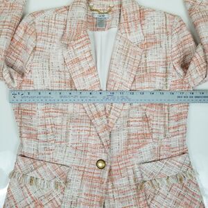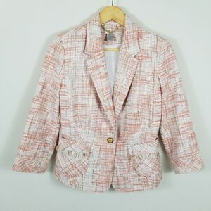 Cache Women's Tweed Blazer Jacket Beige/Pink/Orange 3/4 Sleeve Sz 6 EUC