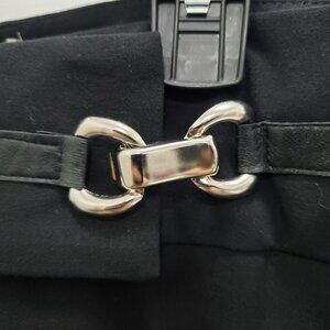 Cache Women's Vintage Black Stretch Leather Strip Horse Bit Wide Leg Trouser 12