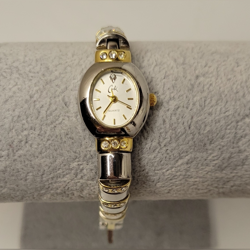 "Caché" Women's Gold Tone, Silver Tone, and Rhinestones Watch with New Battery Installed (Works)