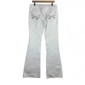 Cache Women’s White Stretch Bootcut Pants in Size 14! Crafted with a flattering bootcut silhouette and a comfortable stretch fabric, these pants are perfect for dressing up or down. In excellent condition, they’re a versatile addition to your wardrobe for any season.
