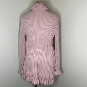 Cache Wool Blend Cardigan S/M Women Pink Angora Tie Front Ruffle Chunky Rib Knit
