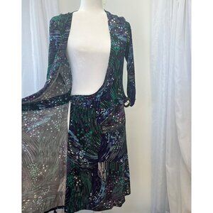 Cache Wrap Dress Long Sleeve Abstract Geometric Print Ladies Size MED Belted
