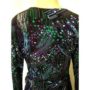 Cache Wrap Dress Purple Teal 3/4 Sleeve V Neck M