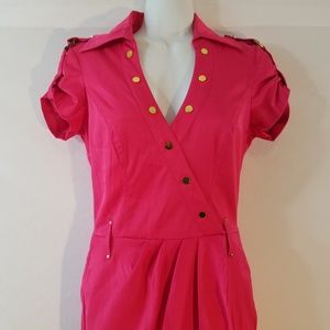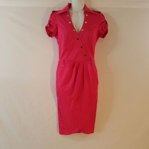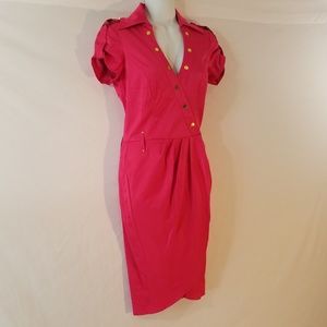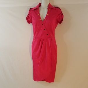 Cache Wrap Shirt Stretch Belted Career Dress Size 2 Vintage Rear Pockets Gold buttons