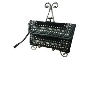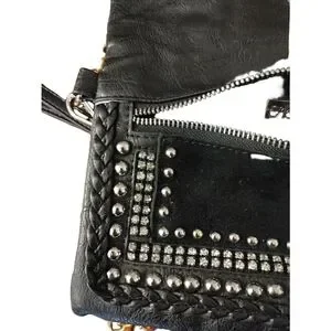 in excellent pre-owned condition satin lining on the interior exterior zipper pocket in excellent condition missing no stones or studs