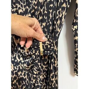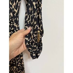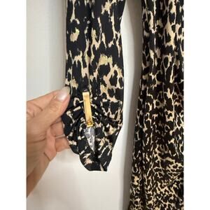 Cache XS 1990’s Y2K leopard cheetah faux wrap cocktail dress black gold ruched
