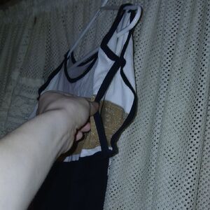 Cache XS Black and Gold Shimmery Striped Cold Shoulder Oversized Women's Top