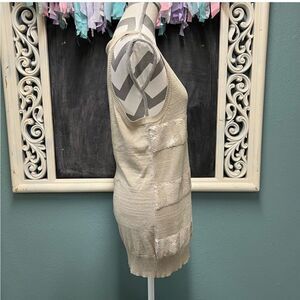 - Cache Y2K Cream with Gold Lightweight Sequined Tank Sweater