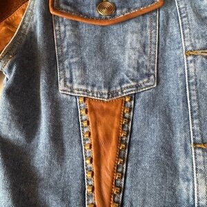 Cache Y2K Jean Jacket Suede Leopard Leather Denim Women’s Size Small NWT