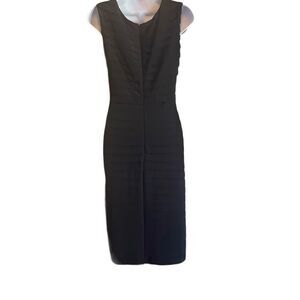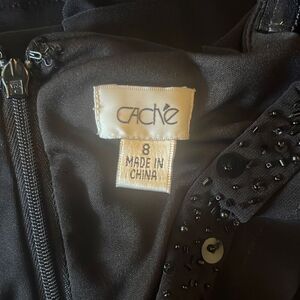 Cache Womens 8 Y2K Vintage Black Beaded V Neck Bodycon Pleated Cocktail Dress