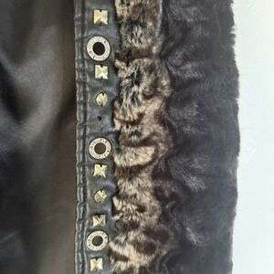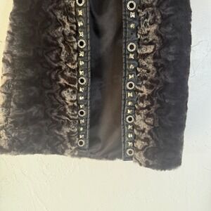 Cache Y2k Faux Fur Vest Studded Embellished Black Brown Animal Print S Small