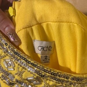 Cache Yellow One-Shoulder Dress with Silver Accents