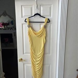 Cache Yellow Ruched Cocktail Dress – Size 12