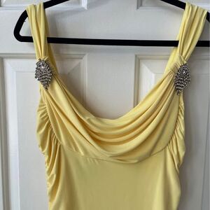 Turn heads in this vibrant yellow Cache cocktail dress, perfect for weddings, parties, or a night out.