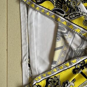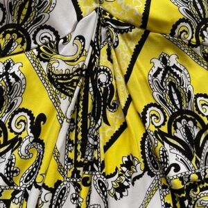 New without tags. never worn yellow poly/spandex halter dress by Cache. Amazing colors, pattern is slimming and glides