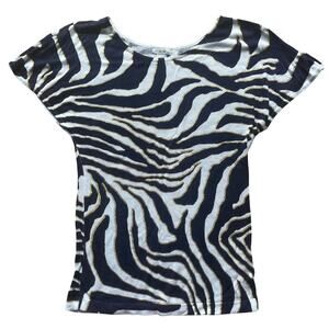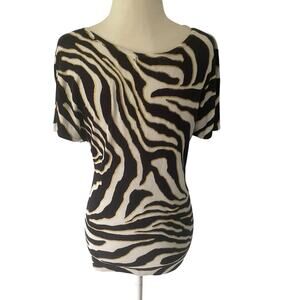 Cache Zebra Print Metallic Gold, Navy, & White Short Sleeve Sweater Small