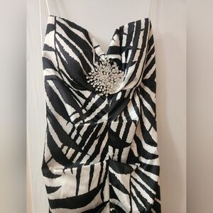 Cache strapless gown with striking zebra pattern. Perfect for elegant occasions.