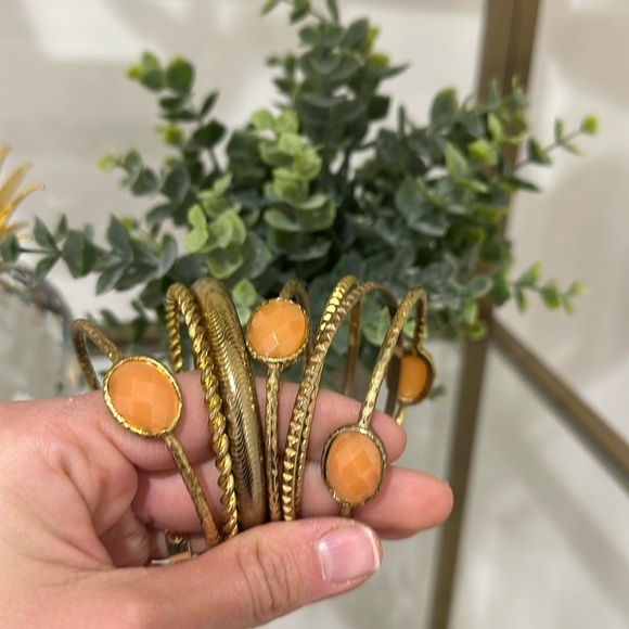 Great condition, maybe worn once or twice. Three bangles have double orange oval stones. You can wear them all together or separately.