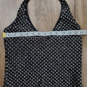 Absolutely stunning beaded halter top with black, silver and gold beading in a chevron like pattern. It is size Medium. Perfect for a night out on the town. Please see pictures for measurements.
