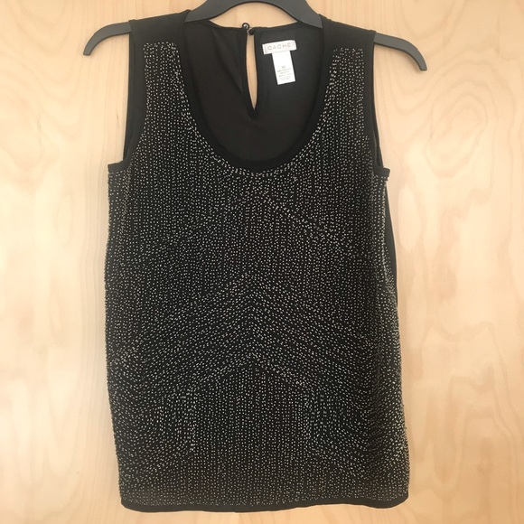 Cache sleeveless top with intricate beaded detail. The back is semi-sheer. Perfect going-out top. So gorgeous!