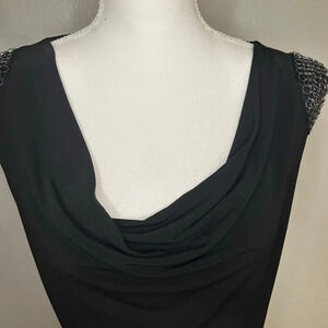 Cache black stretchy mini dress with metal ring accents size M