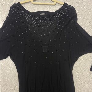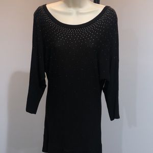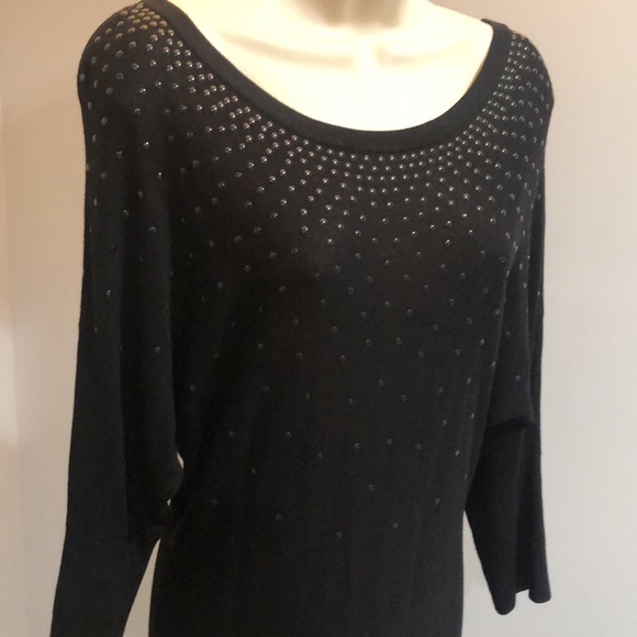 Cache black studded long sweaters looks amazing over skinny jeans or leggings. Or wear as a dress if you are daring and sexy! From top of shoulder to hem runs approx 32” . Comes from a non smoking home. Combine with any other item from my closet and receive a discount.