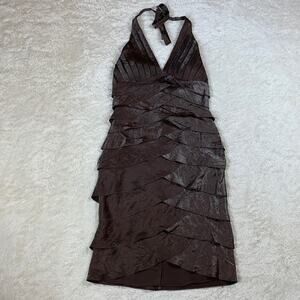 Cache chocolate brown scalloped bandage halter cocktail party dress, size 8