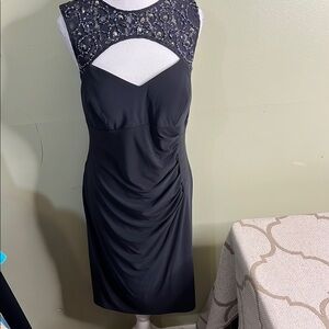 Cache dark gray keyhole open back sequins neckline Sleeveless Ruched Dress