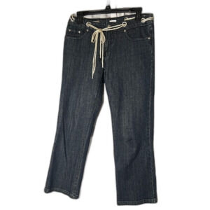Cache’ denim jeans size 4 cropped rope belt w/belt rhinestone circle belt holes