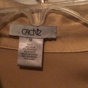 Beautiful gold color with gold buttons and brown leather belt accented with gold chain