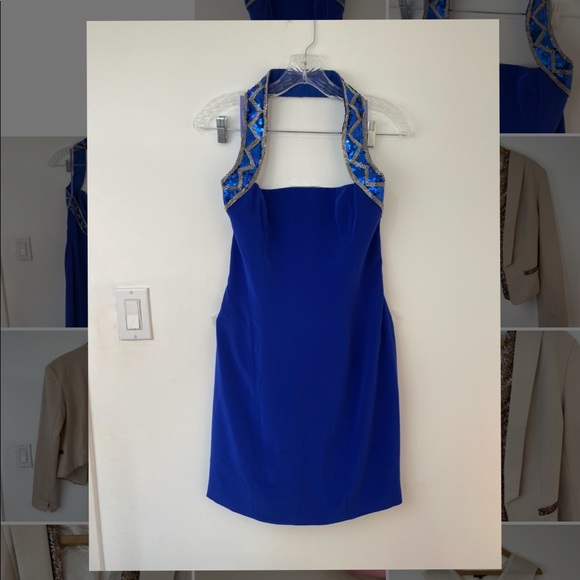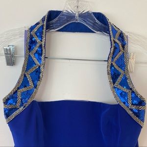 -halter top dress, sequin embroidered.
