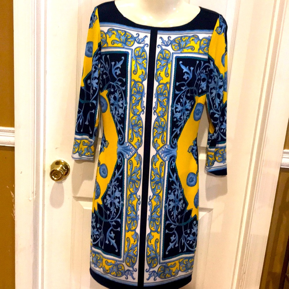 Beautiful lined dress approximate measurements shoulder 15,bust 16 waist 15 sleeve 19 ,dress L 35 inches