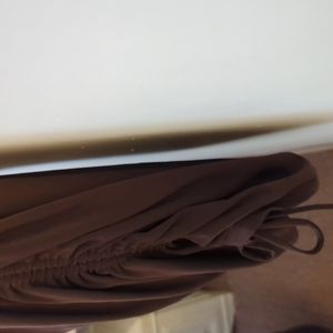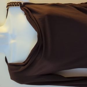 Cache one shoulder dress , rich brown color ruched on one size w tie. Pretty draped neckline, size 6