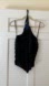 Chic but versatile, this low-backed, black, pleated halter top can pair with a formal skirt for a black-tie affair or with jeans and heels for an upscale night out. Features a blue sequined floral embellishment at the throat.