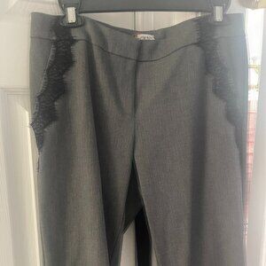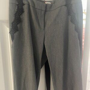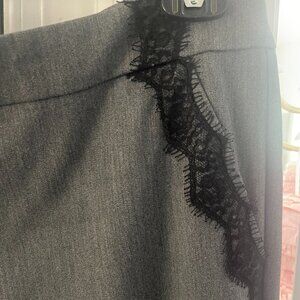 cute gray capri pants with black lace detail around the top. Perfect for work or play.