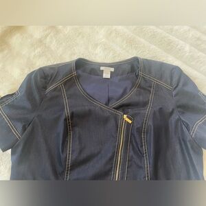 Cache jacket. Size: large. Color: Navy. Beautiful design with gold zippers accent . Light denim . No tag worn once very good condition. Matching items sells separately.