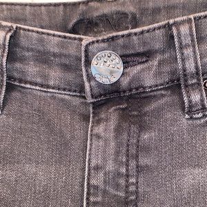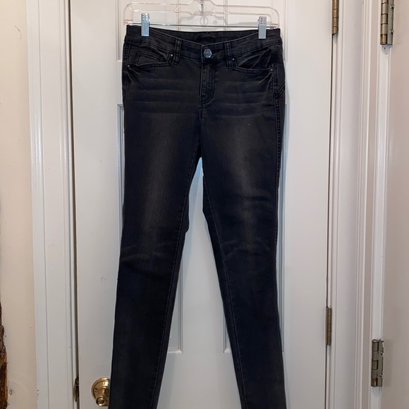 These ate stretchy skinny jeans with cute small black jewels around the front pockets silver stitched lining on the back ones. Only worn a few times and still in perfect condition!