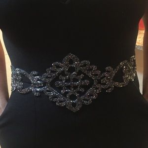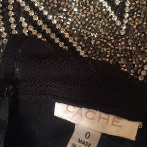 Beautiful cache jumpsuit. Black with rhinestone trimmings. Fits your curves like no other 😂❤️. Worn once. Size 0 in cache is usually a little larger than average size 0. I'd say at least s size 2. Last photo entails texture. Model is a full size 2.