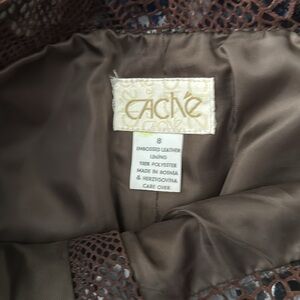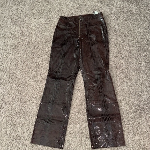 Cache brown leather pants, size 8, never worn, tags intact,embossed leather lining, 100%polyster