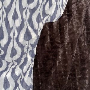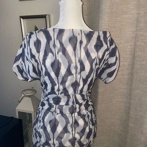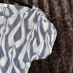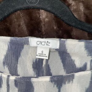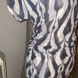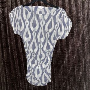 Cache mesh top with gray and ivory pattern. Ruching at sides and shoulders. Excellent condition.