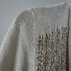 Cache metallic 3/4 sleeve open front cardigan knit sparkly fall winter autumn M
