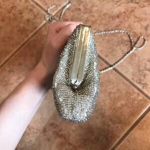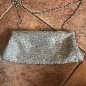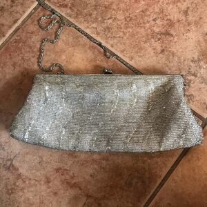 Cache mini crossbody purse silver beaded formal cocktail party prom