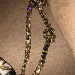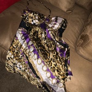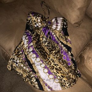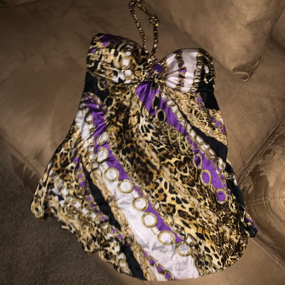 Tube top padded, tie around neck material intwined through thick chain
