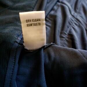Cache navy blue cocktail dress with a halter neckline and tiered layers