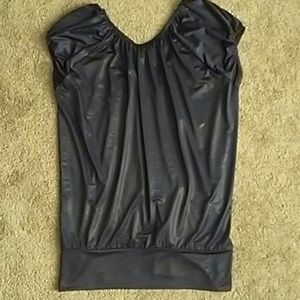 Cache women's ruchced navy blue shirt in small! Gorgeous satin like material shines and looks great for any occasion!!