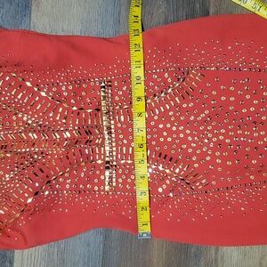 showstopper dress orange with gold embellished bling bodycon strapless size 0 by cache excellent condition no issues
