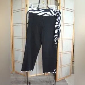 Cache Black and White Zebra print Crop pant. Side hook and tye sash. (F)